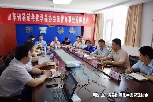 8月4日,山东省易制毒化学品管理协会东营办事处揭牌仪式在东营隆重举行。省禁毒办副主任、省公安厅禁毒总队副总队长徐金元出席活动并讲话,市禁毒委副主任、市禁毒办主任、市公安局党委委员、副局长刘玉海出席活动并致辞。