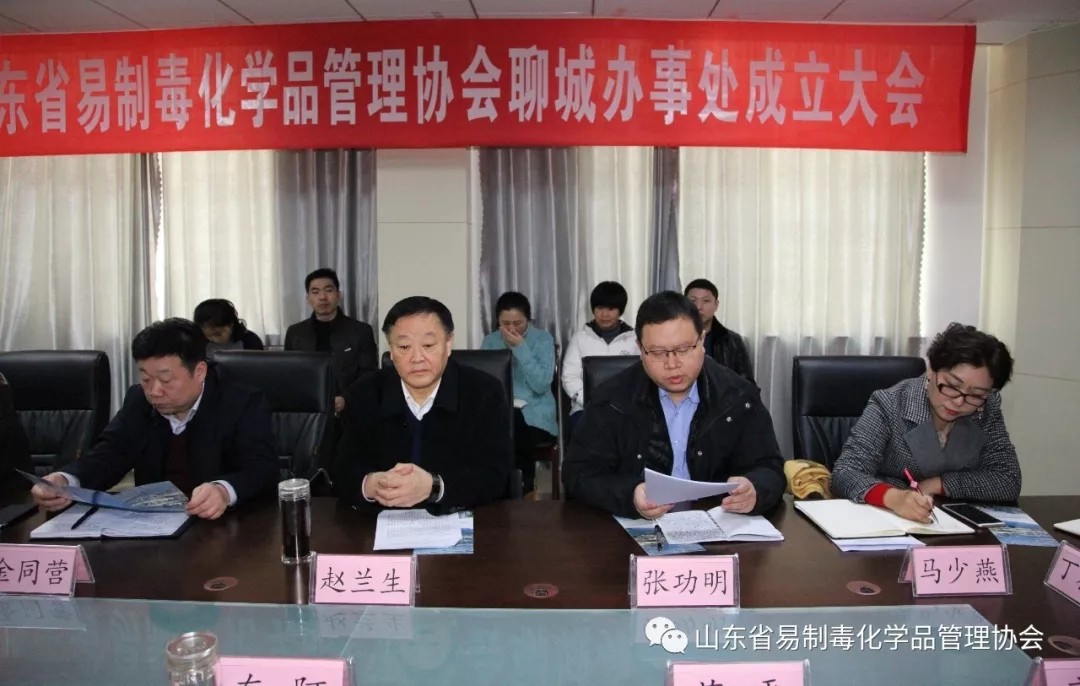 马少燕秘书长指出, 山东省易制毒化学品管理协会聊城办事处成立以后,一要加强行业自律。要督促会员单位规范生产、购销、运输管理,指导帮助建立健全易制毒化学品管理规章制度,健全安全检查员队伍,开展常态化禁毒宣传、知识培训和安全检查。二要强化服务意识。要牵头制定、推广易制毒化学品生产、经营、使用、储存、运输行业准则和管控机制,建立健全信息平台,为企业提供法律、信息和其它服务,促进企业信息交流,技术协作和互利互惠,依法维护会员单位的合法权益,为行业共同繁荣、服务新旧动能转换重大工程发挥职能作用。三要联动综合治理。各企业会员单位要密切配合公安机关禁毒部门工作,形成更加高效、有序的禁毒工作格局。积极举报涉毒违法犯罪活动,协助公安机关开展行业调查、资质审查、工信证明、风险预警等工作。