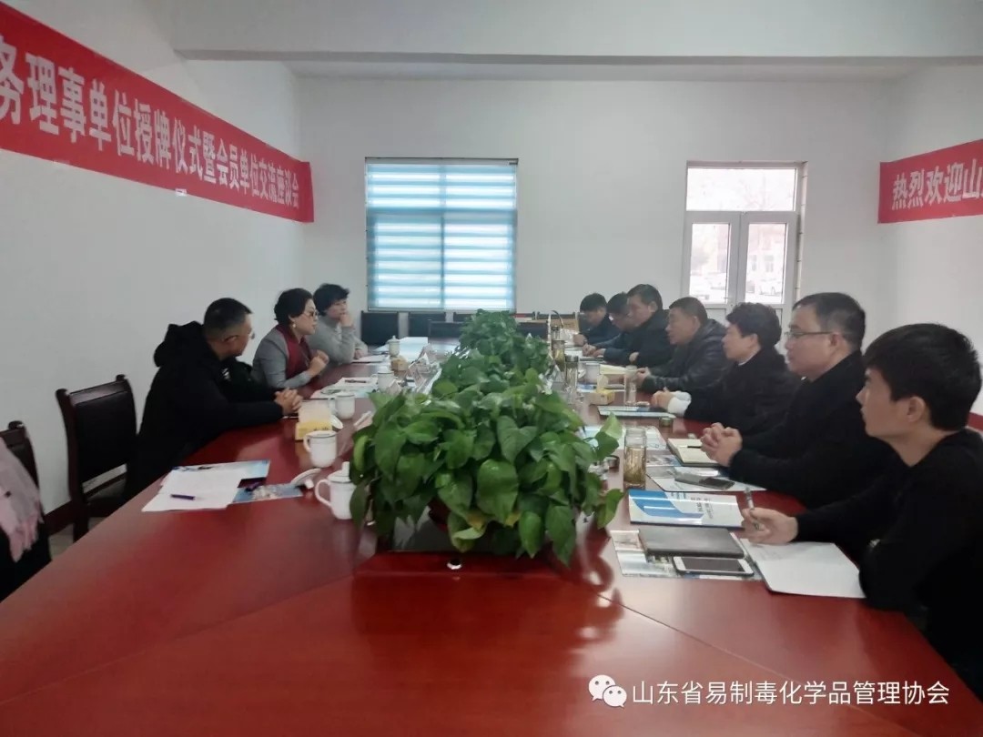 为充分发挥协会助推易制毒化学品管理发展的重要职能作用,主动作为,共同发力。12月21日,山东省易制毒化学品管理协会秘书长马少燕率员赴济宁市圣聚化工有限公司举办协会(济宁)理事级以上单位座谈会暨举行授牌仪式。济宁市公安局市中分局禁毒大队民警孔凡彬,济宁市圣聚化工有限公司董事长王洪英、总经理张宝囤、副总经理张伟出席活动,济宁市圣聚化工有限公司销售经理朱峰主持会议。
